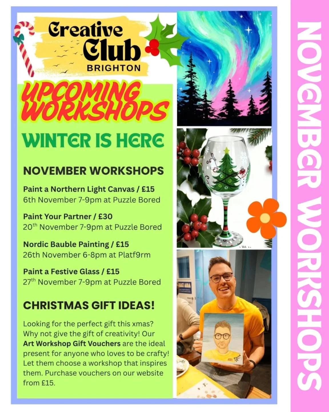 Today, Creative Club Brighton is more than just a workshop, itβs a community. A welcoming space for artists, beginners, and everyone in between to experiment and to learn a new skill.