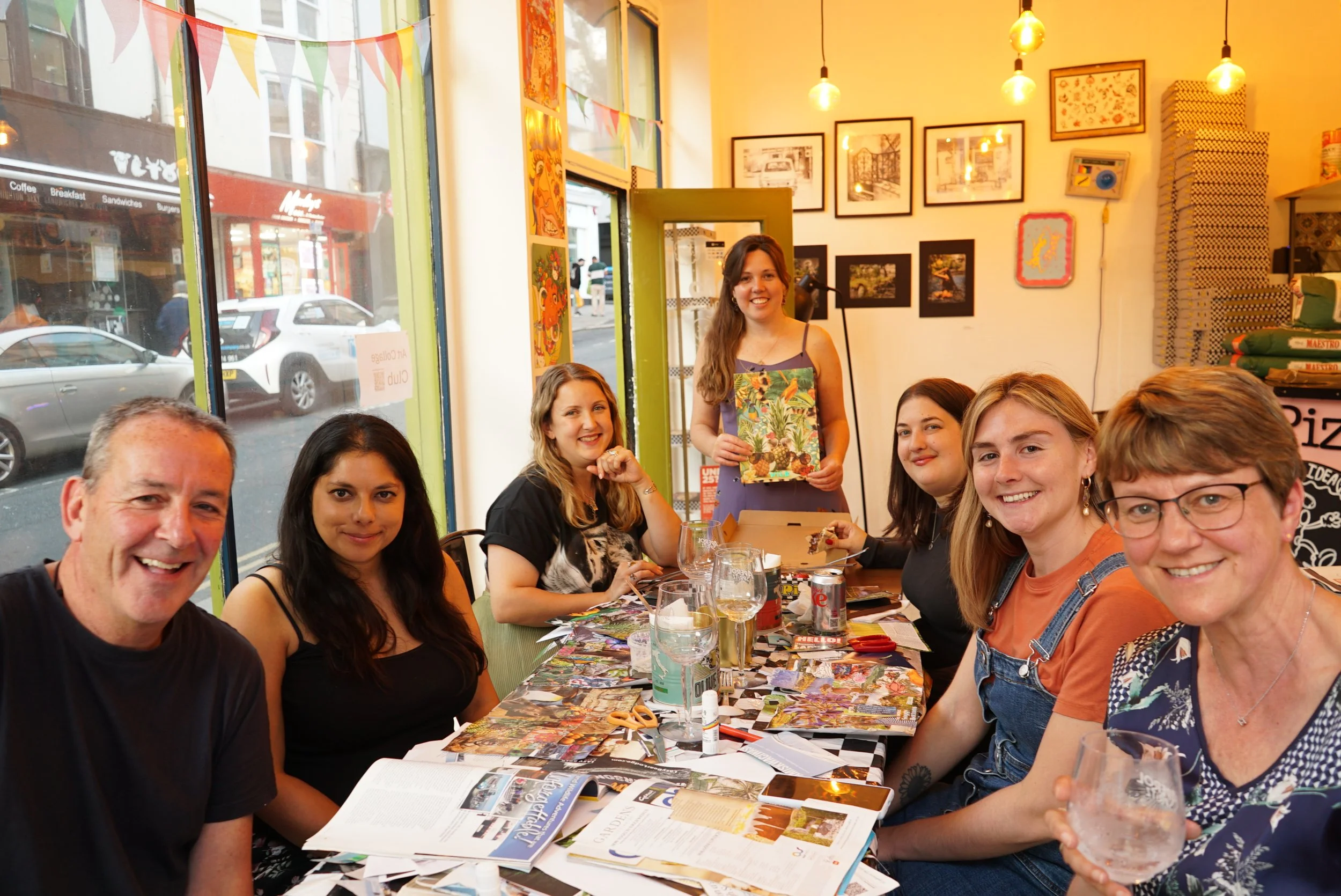 With a few borrowed tables, stacks of magazines, and a dream, Creative Club Brighton was born. Laura began small, hosting collage nights at a pizzeria inviting friends to cut, paste, and chat over slices of pizza. Word spread quickly, and soon strangers became friends, united by a love of making things with their hands. Brighton, with its eclectic energy and artistic soul, felt like the perfect home for something bigger.