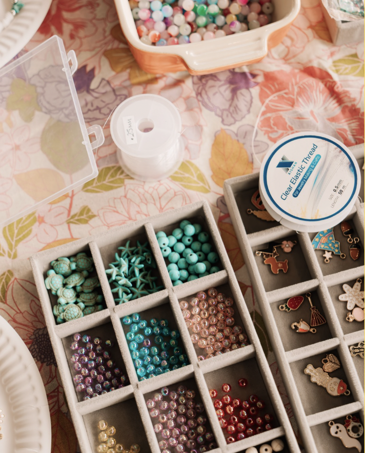 Our pop up Bead Bar offers a fun, hands-on creative experience where children can design and make their own jewellery and accessories. This can include phone charms, necklaces and bracelets.